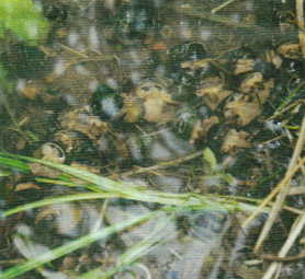 無農薬の田んぼのタニシのむれ